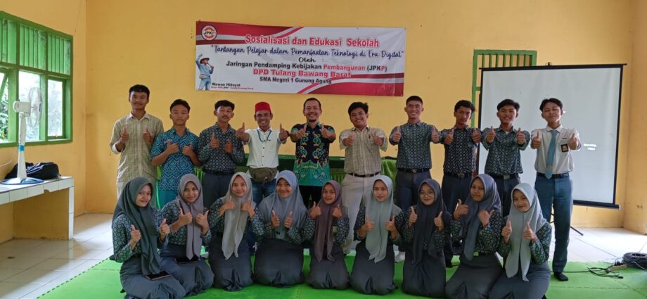 Tulang Bawang Barat, Dewan Pengurus Daerah (DPD) Jaringan Pendamping Kebijakan Pembangunan (JPKP) Kabupaten Tulang Bawang Barat (Tubaba) menggelar kegiatan Sosialisasi dan Edukasi di SMA Negeri 1 Gunung Agung Kabupaten setempat, Kamis (9/1/2024).