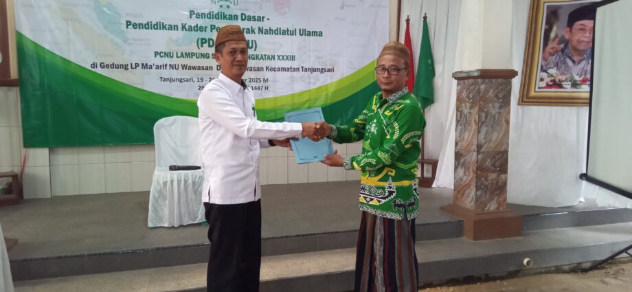 Ia menyampaikan hal itu dalam sambutannya pada PD-PKPNU Angkatan XXXIII di Gedung LP Ma’arif NU Wawasan, Kecamatan Tanjung Sari, Lampung Selatan, Jumat (19/9/2025).