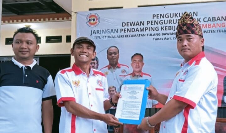 Tulang Bawang Barat, M-TJEK NEWS – Ketua Dewan Pimpinan Daerah (DPD) Jaringan Pendamping Kebijakan Pembangunan (JPKP) Tulang Bawang Barat (Tubaba), Wawan Hidayat, memimpin langsung pengukuhan pengurus Dewan Pimpinan Anak Cabang (DPAC) JPKP Tiyuh Tunas Asri, Kecamatan Tulang Bawang Tengah, pada Sabtu (22/3/2025).