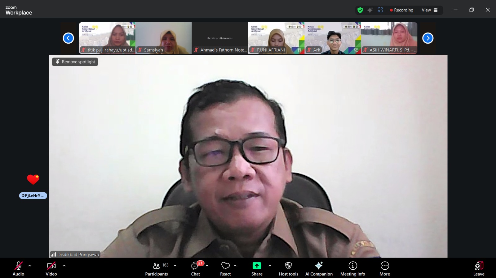 Para guru dari berbagai sekolah di wilayah Kabupaten tersebut mengikuti kegiatan ini secara daring dengan penuh antusias. Peserta mendapatkan materi mendalam mengenai etika teknologi, manajemen prompt, serta pemanfaatan kecerdasan artifisial untuk pengelolaan kelas yang kreatif.