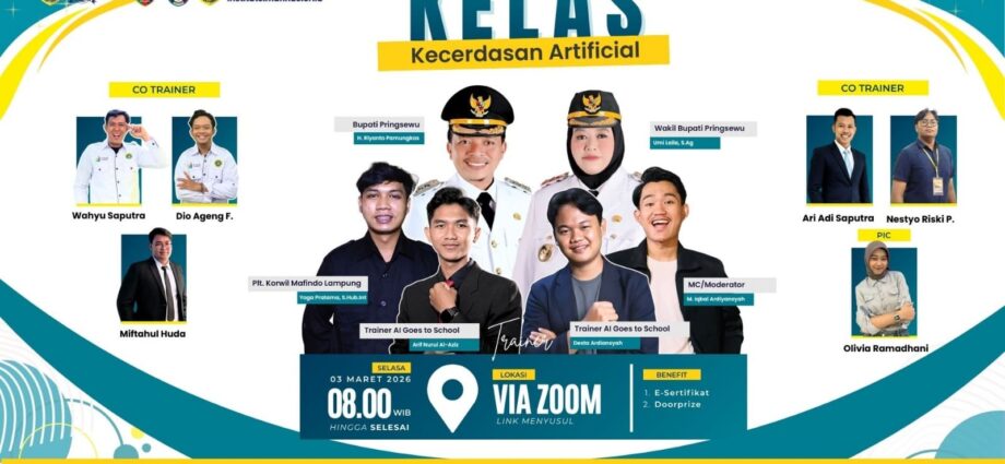 Pringsewu,M-TJEK NEWS – Pringsewu menjadi lokasi pelaksanaan program unggulan “AI Goes To School” yang mempertemukan Pemerintah Kabupaten Pringsewu dengan Mafindo Lampung pada Selasa (3/3/2026). Kolaborasi strategis ini bertujuan untuk mendampingi 10.000 guru di 40 kota guna meningkatkan kompetensi di bidang kecerdasan artifisial. Selain itu, dukungan dari Google.org, AVPN, dan Asian Development Bank (ADB) memperkuat implementasi program ini agar guru mampu menghadapi tantangan pendidikan pada era digital yang serba cepat.